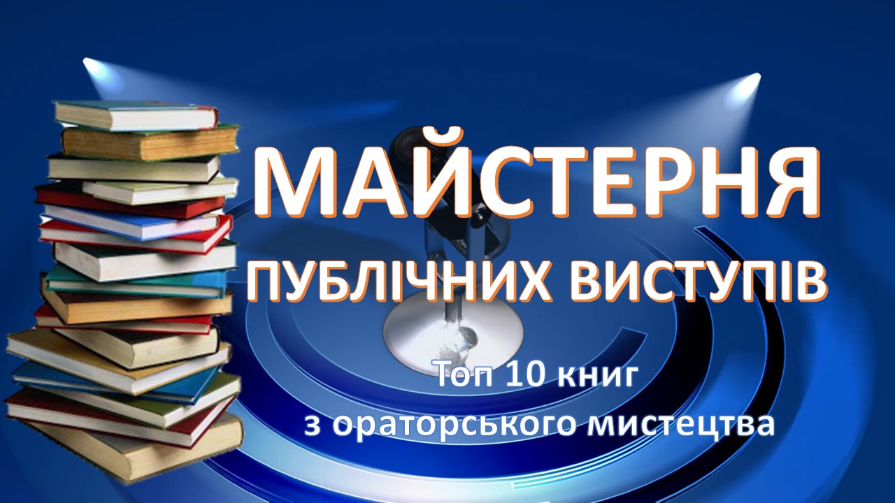 Запрошуємо вас ознайомитись із десяткою кращих книг із ораторського мистецтва, які є у фондах наукової бібліотеки. У цих книгах даються конкретні поради щодо того, як побудувати й виголосити промову перед широкою аудиторією, як опанувати основи психологічних знань, які слід використовувати у сфері спілкування з людьми.