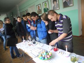 У дружній атмосфері, допомагаючи один одному, студенти ознайомилися з традиціями нашого народу і навчилися творити писанки. Жоден студент не залишився осторонь цієї справи, і з великою цікавістю все занурилися в царину розпису елементів писанки. Найцікавішим для студентів виявився процес знімання воску з яєць, адже під такою оболонкою приховувались усі фантазії.