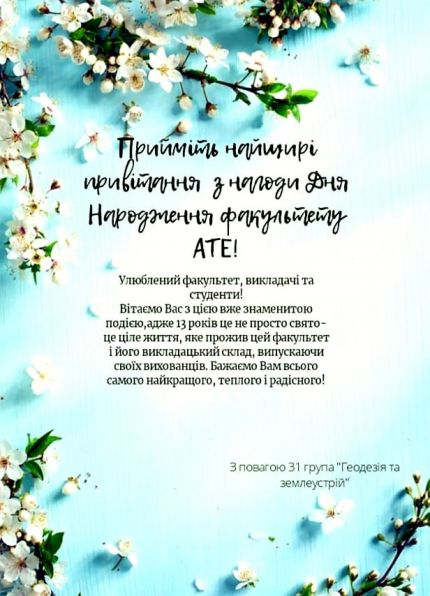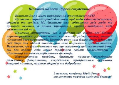Життя факультету продовжується і попереду на нас чекає багато нових цікавих справ, сподівань, перспективних шляхів і нових зустрічей. Тож щасти тобі, та з Днем факультету, РІДНИЙ АТЕ!