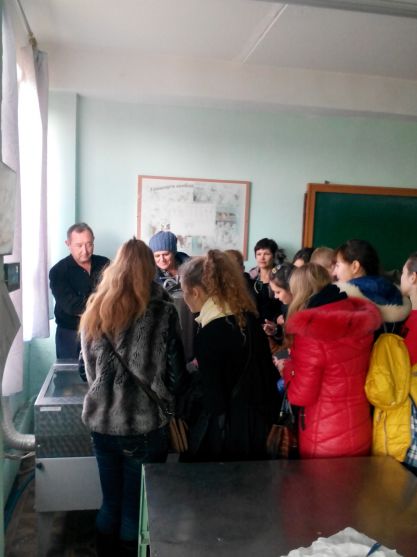 Ознайомчу екскурсію проводив доцент кафедри ОПХВ Олексієнко Вадим Олександрович. Він показав школярам лабораторії кафедри, приділивши особливу увагу презентації діючих лабораторних установок, організації практичної підготовки студентів, розповів як здійснюється теоретична та практична підготовка майбутніх спеціалістів, які вивчаються дисципліни, яке лабораторне обладнання при цьому використовується. А також зазначив види діяльності та посади, які зможуть обіймати випускники спеціальності «Обладнання переробних та харчових виробництв» після закінчення навчання у ТДАТУ.