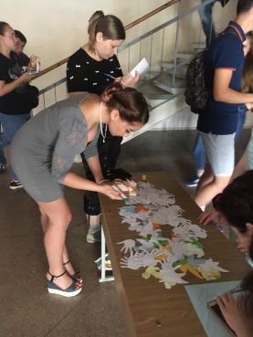 Саме в цей день студентська рада факультету агротехнологій та екології об 11:20 запросила молодь факультету на майстер-клас з виготовлення символу миру – голуба. Хлопці та дівчата із задоволенням освоювали таке цікаве заняття. Всі залишися задоволеними та пішли на заняття з гарним настроєм та приємними спогадами.