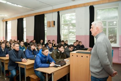 У своїй доповіді Зуєв О.О. розповів про те, які війска захищають об’єкт поблизу селища Піски, в яких умовах знаходяться наші військові, як облаштовані побутові умови, яку підтримку з боку населення вони отримують. Важливо було почути, як малюнки і листи дітей допомагають в тяжких умовах виживати, вони нібито талісмани захищають наших військових. Розповідь, ілюстрована фото- та відеоматеріалами про бойові дії на сході України, про загиблих солдат і мирне населення, про героїв АТО, історії їх життя, проходила в повній тиші.
