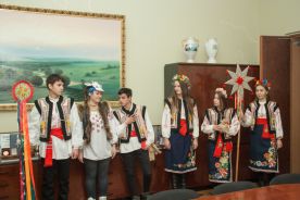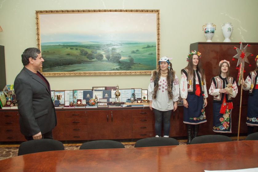 Стати учасником подібних обрядів сьогодні нам надав можливість деканат ФЕБ. Студенти разом з викладачами кафедр факультету відвідали ректорат університету. В яскравих тематичних костюмах та зі святковим реквізитом студенти привітали зі Старим Новим роком. Слідуючи традиції хлопці посівали зерном, а дівчата заспівали «Щедрик». Цікавим доповненням стало так зване ворожіння, де бажаючі могли дістати з торбинки наповненої різними передбаченнями, «своє» та дізнатися що ж чекає їх у Новому році! Після цього студенти ТДАТУ попрямували до шкіл м. Мелітополя несучи святковий настрій та залучаючи дітей до яскравого святкування.