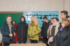 Після цього проректор з навчальної роботи, к.т.н., доцент Ломейко О.П. провів з ними екскурсію університетом основними навчальними корпусами, аудиторіям. Учням було представлене обладнання, за допомогою якого відбуваються практичні заняття студенти.