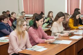 Методист відділу профорієнтації та довузівської підготовки О.П. Спірінцева представила учням презентацію спеціальностей університету. Крім спеціальностей, яким багато років навчають у ТДАТУ, нещодавно додалися й нові: «Туризм», «Готельно-ресторанна справа» та «Прикладна механіка» за освітньо-професійною програмою «Комп’ютерне проектування і дизайн».