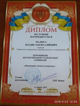 Колектив кафедри сільськогосподарських машин щиро вітає команду факультету та Малюгу Владислава та бажає подальших наукових досягнень!