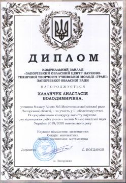 Під керівництвом асистента кафедри Лариси Халанчук було підготовлено дві науково-дослідницькі роботи учнів 8 класу Гліба Філобока і Анастасії Халанчук, вихованців комунального закладу «Центр позашкільної освіти». Учні гідно представили свої дослідження і отримали дипломи учасників конкурсу, а Гліб Філобок посів ІІІ місце у секції «Математика».
