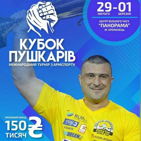 З 28 лютого по 1 березня 2020 року в м. Кременець (Тернопільська область) відбувся Міжнародний турнір з армспорту “Кубок Пушкарів”, пам’яті Анатолія та Андрія Пушкарів, заслужених українських тренерів з армрестлінгу. На дводенне дійство з’їхалися близько 200 спортсменів з 6 країн світу (Болгарії, Молдови, Румунії, Швеції, Словаччини та України).