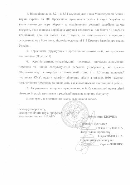 3. Відправити на простій адміністративно-господарський, навчально- допоміжний персонал та інші категорії працівників університету, які не знаходяться в щорічній тарифній відпустці та не працюють на умовах дистанційної роботи.