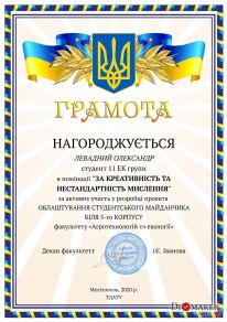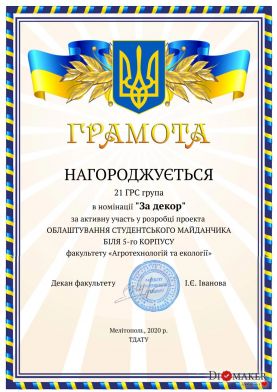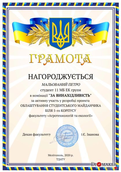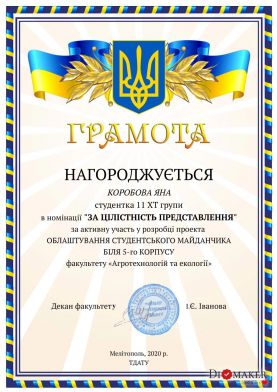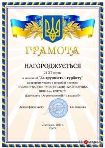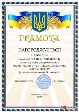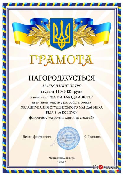 April 22 – Day of the Earth, as well as the years since the founding of the Faculty of Agrotechnologies and Ecology of Dmytro Motornyi Tavria State Agrotechnological University. For this holiday, from April 12th the competition «The best student project of arrangement of a field for youth» was held at the faculty, which is located near the central entrance to the 5th corps from Universitetska Street.
