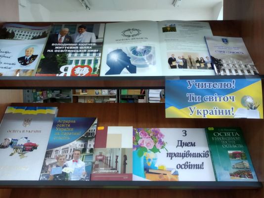 До дня працівників освіти наукова бібліотека підготувала експрес-виставку, на якій представлені видання: «Вища освіта України», «Покликання університету», О.О. Базалук «Філософія освіти», «Таврійський державний агротехнологічний університет імені Дмитра Моторного», «Учений, педагог організатор», «Аграрна освіта України», «Освітні технології», «Володимир Кюрчев. Життєвий шлях на освітянській ниві» та тощо.