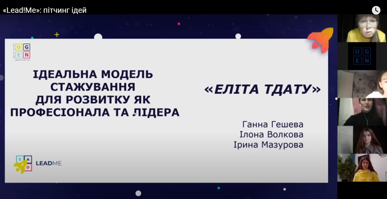 Вони обрали напрям «Ідеальна модель стажування для розвитку як професіонала та лідера» та виступали у форматі онлайн перед усіма учасниками та журі проекту. Команда дівчат хоч і не зайняла призове місце, але цей безцінний досвід надовго залишиться у них в пам’яті.