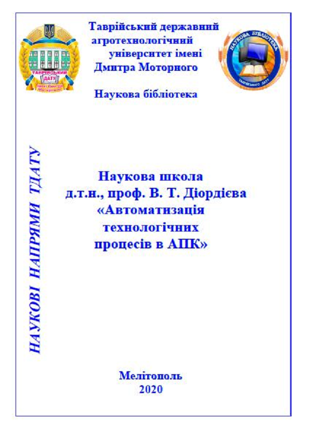 З метою розкриття наукового потенціалу університету, бібліотека презентує історико-бібліографічний нарис з проєкту «Наукові напрями ТДАТУ». Сьогодні знайомимо вас з науковою школою «Автоматизація технологічних процесів в АПК», яка сформувалась у 2000-х роках, засновником і науковим керівником якої є доктор технічних наук, професор Володимир Діордієв.