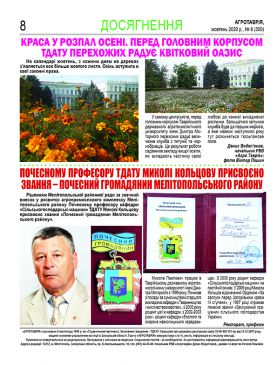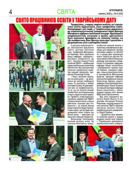 Редакційно-видавничий відділ підготував черговий, 300-й, номер університетської газети «Агро Таврія». На шпальтах видання висвітлені важливі та цікаві події з життя університету, що відбувалися у жовтні.