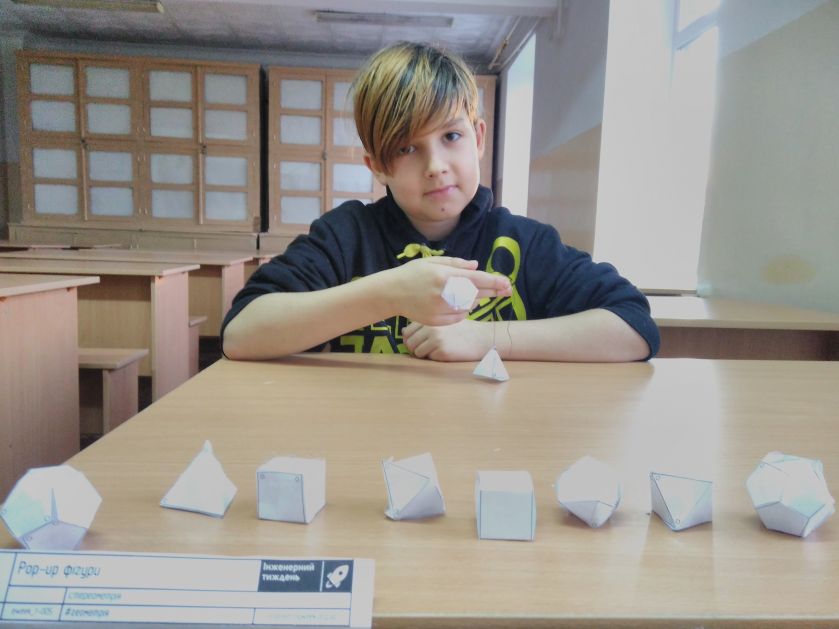 Під час занять учні моделювали різні об’єкти: просторові фігури (тетраедр, куб, октаедр та ін.), реактивний автомобіль, проектор, модель імітації чоловічого та жіночого голосу та сопілку. Все це було виготовлено за допомогою простих речей, що можна знайти майже в кожному будинку. Було проаналізовано особливості прикладної математики та фізичні властивості моделей для досягнення правильного функціонування отриманих об’єктів. Заняття викликало жваве обговорення та потік нових ідей.