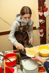 Студенти розповіли гостям заходу про особливості приготування різних видів млинців: дріжджових, бездріжджових, на воді, молоці, кефірі, товсті, тоненькі, великі, маленькі, ажурні, щільні тощо.