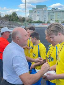 Від нашого університету, завдяки фінансовій підтримці ректора ТДАТУ, д.т.н., професора Володимира Кюрчева та голови профспілкового комітету нашого навчального закладу Миколі Андрущенку, честь представляти рідну альма-матер випала членам збірної команди ТДАТУ по футболу (головний тренер – к.т.н., доцент Михайло Зоря) та спортивним активістам Студентської ради ТДАТУ під керівництвом старшого викладача кафедри фізичного виховання і спорту Олександра Мілаєва.