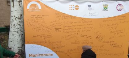 За словами провідного спеціаліста відділу сімейної політики УСЗН Олени Воловик, далі цей банер буде відправлено до Києва, де його, як і банери з інших міст України, оцифрують та зроблять на його основі соціальну рекламу проти домашнього насильства – таким чином усі мелітопольці, які залишили свій заклик чи побажання на банері стануть творцями масштабної соціальної реклами.