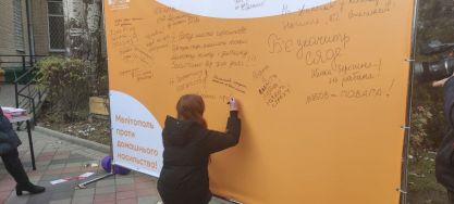 З 25 листопада по 16 грудня в Україні триває щорічна всесвітня акція «16 днів проти насильства». У Мелітополі в день початку акції провели символічний захід та приєдналися до створення масштабної соціальної реклами проти насильства.