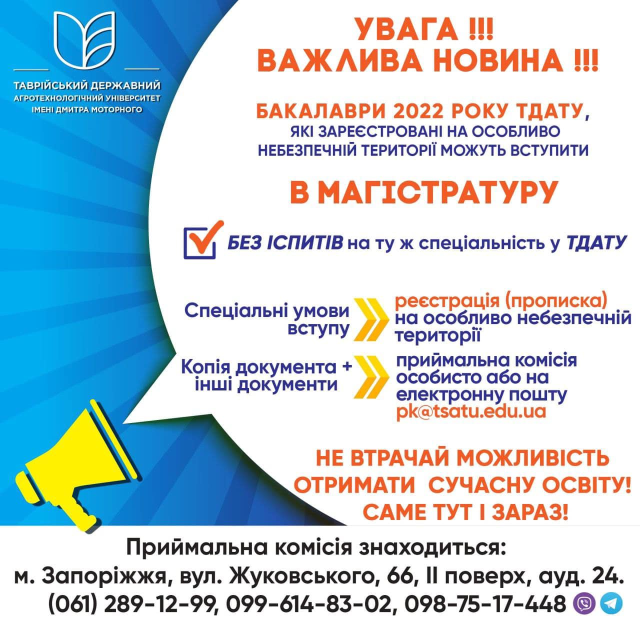 Увага! Спрощено вступ в магістратуру до ТДАТУ