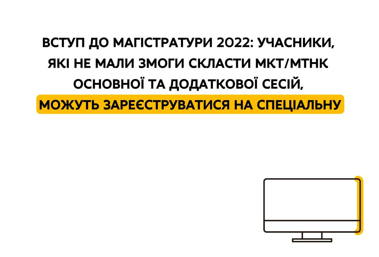 Вступ до магістратури 2022: учасники, які не мали змоги скласти МКТ/МТНК основної та додаткової сесій, можуть зареєструватися на спеціальну