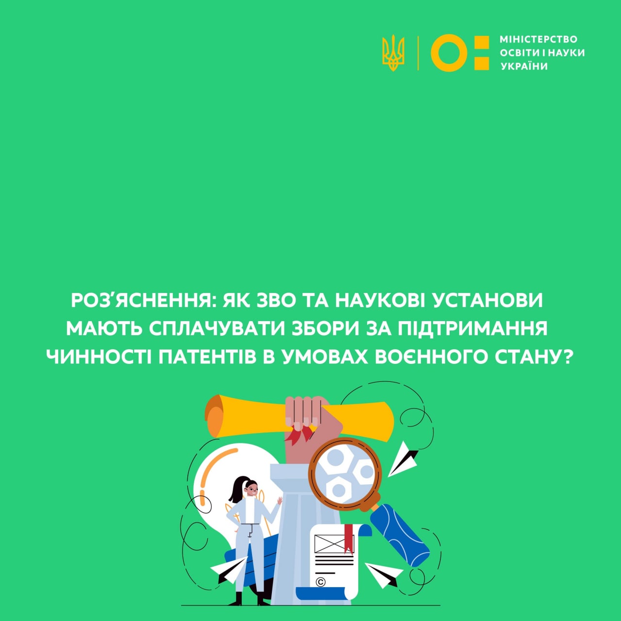 Як ЗВО та наукові установи мають сплачувати збори за підтримання чинності патентів в умовах воєнного стану