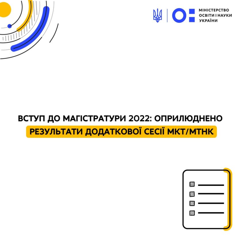 7-9 вересня 2022 року відбулися додаткові сесії МКТ/МТНК (вступних випробувань до магістратури). Результати доступні у кабінетах учасників вступних випробувань до магістратури, а невдовзі будуть доступні і в ЄДЕБО.