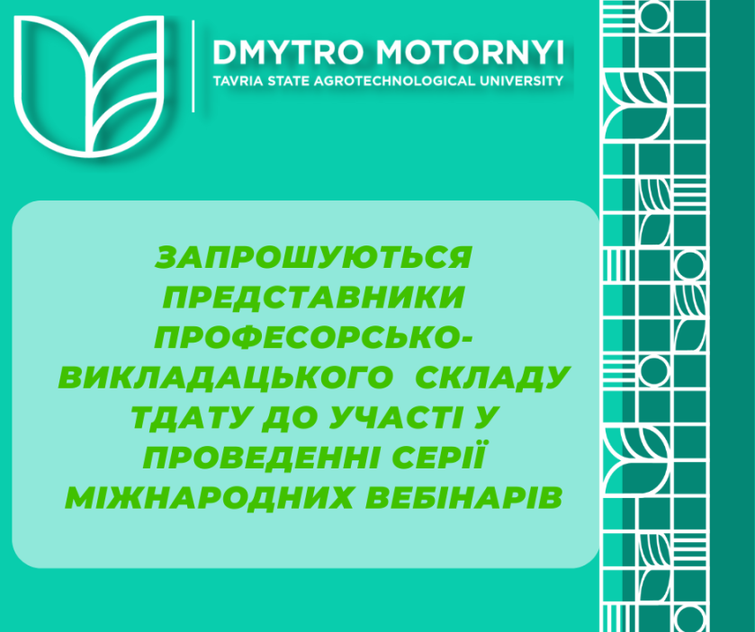 У рамках співпраці між Таврійським державним агротехнологічним університетом імені Дмитра Моторного та університетом СТЕКОМ (Індонезія) запрошуються представники професорсько-викладацького складу ТДАТУ до участі у проведенні серії міжнародних вебінарів.