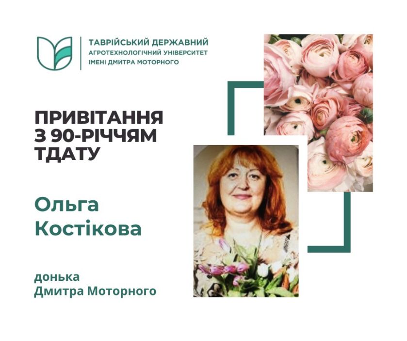 Родина Дмитра Костянтиновича Моторного вітає університет з 90-річчям з дня заснування! Нашу родину з університетом пов’язують теплі, дружні, майже родинні стосунки. І це природньо. Тут навчався наш батько, був Почесним професором і членом Наглядової ради ТДАТУ. Багато років поспіль він був частим гостем рідної Аlma mater, тут в останні роки частими гостями стали й ми.