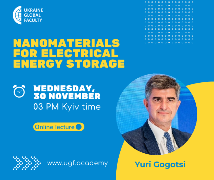 Відкрито реєстрацію на онлайн-лекцію Ukraine Global Faculty: Yury Gogotsi «Nanomaterialsfor Electrical Energy Storage», яка відбудеться 30 листопада 2022 року о 15.00.