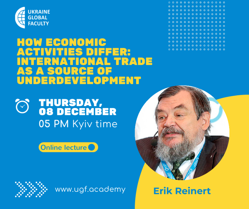 Відкрито реєстрацію на онлайн-лекцію Ukraine Global Faculty: Erik Reinert «How economic activities differ: international trade as a source of underdevelopment», яка відбудеться 08 грудня 2022 року о 17.00.