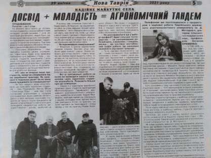 за матеріалами видання «Нова Таврія» №17 (11556), від 29 квітня 2021 року