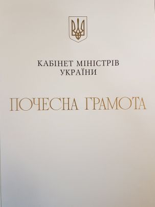 – The Certificate of Honor from the Cabinet of Ministers of Ukraine;