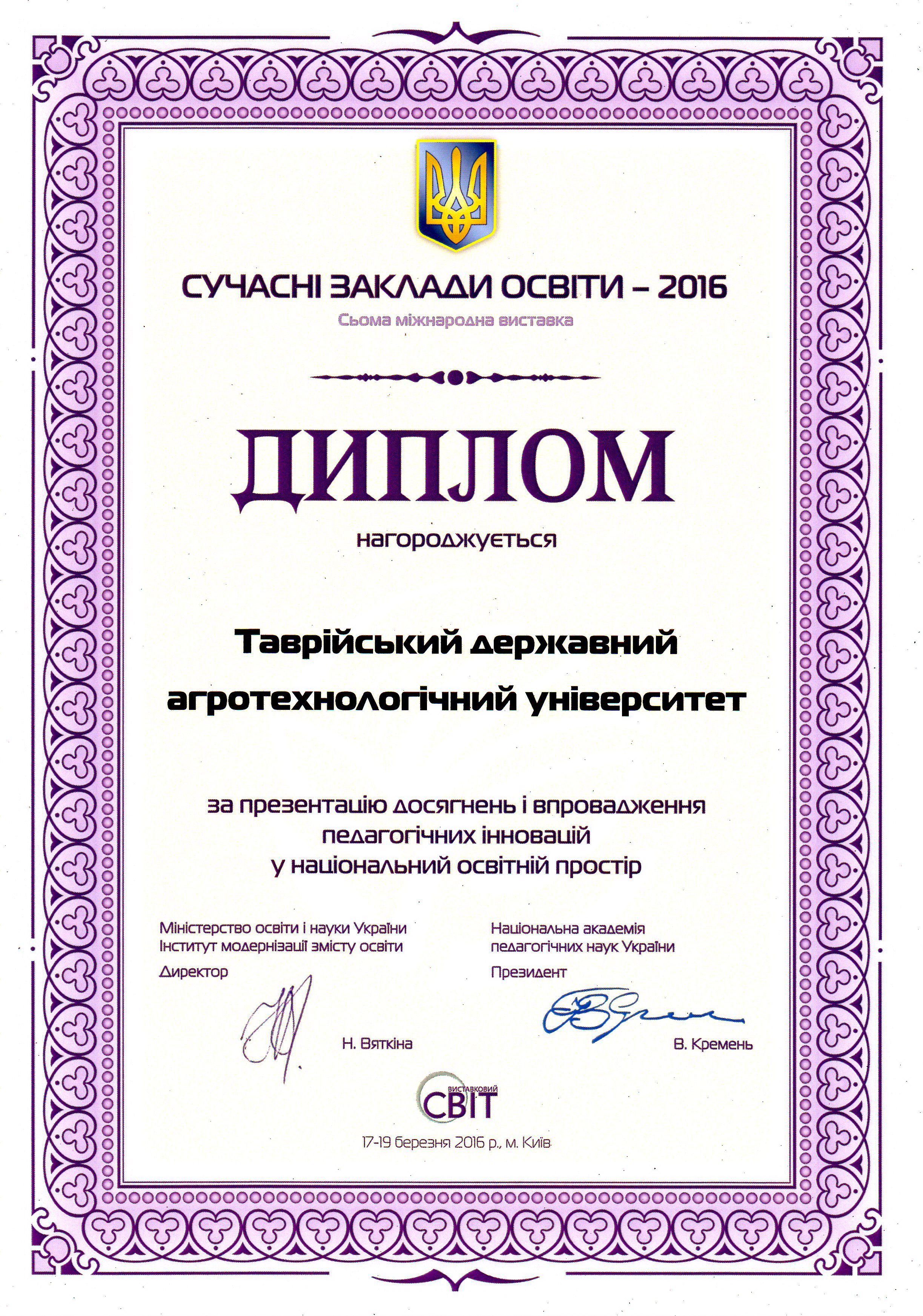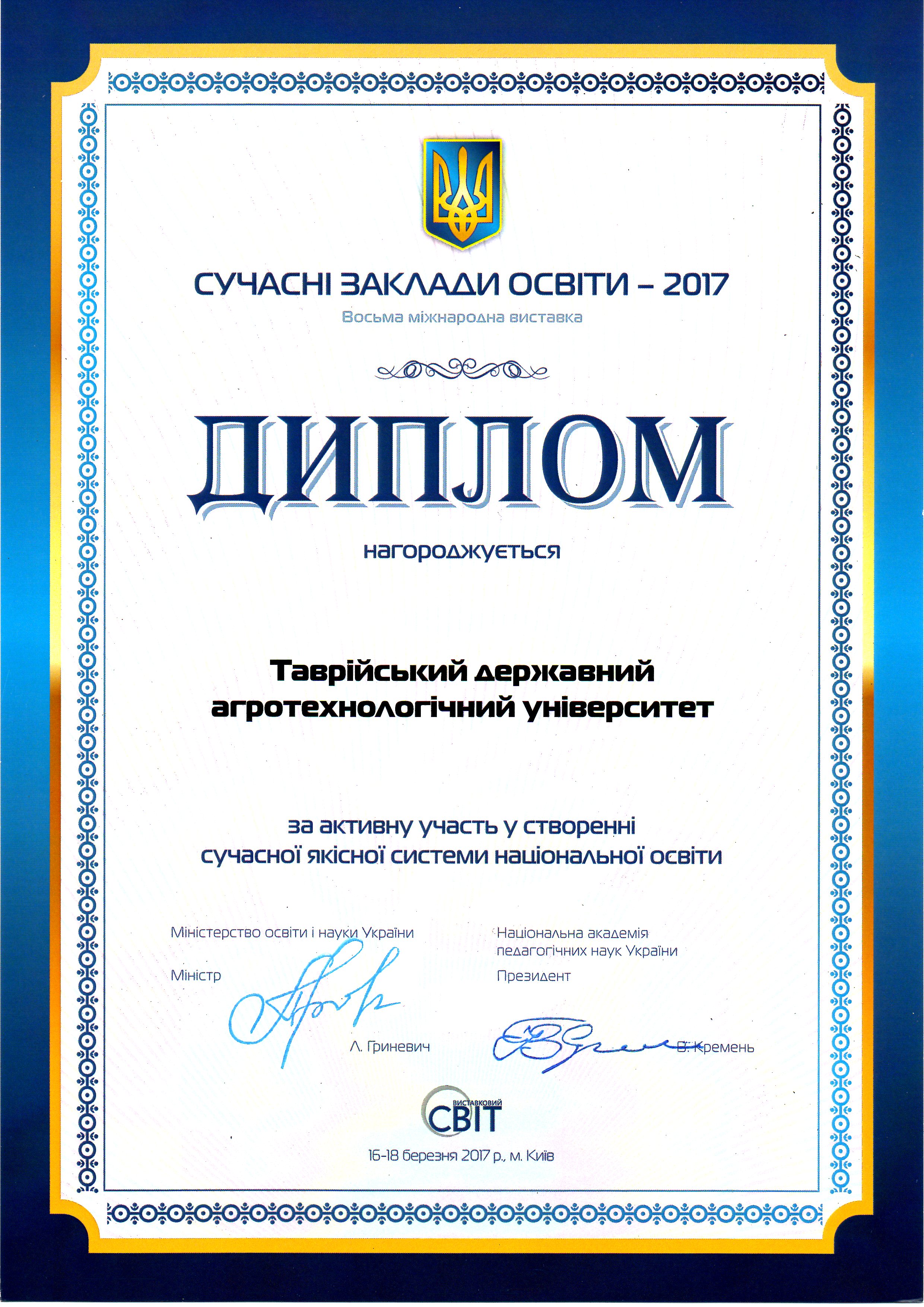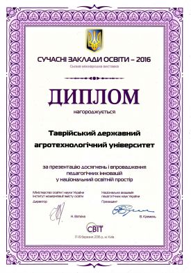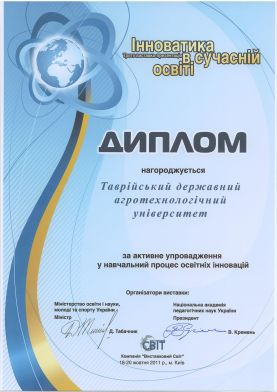 The Tavria State Agrotechnological University has been successfully represented at numerous international and national exhibitions, presentations, educational forums, and events, including: