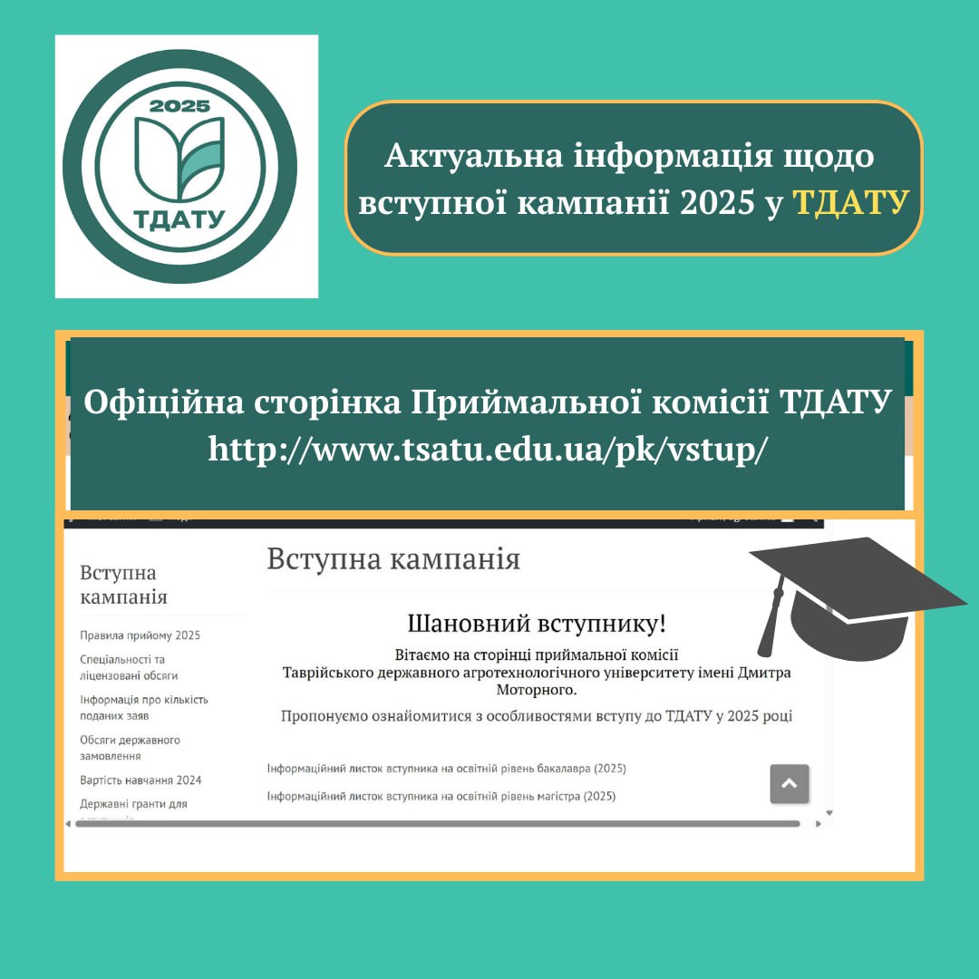 Актуальна інформація щодо Вступної кампанії 2025 у ТДАТУ