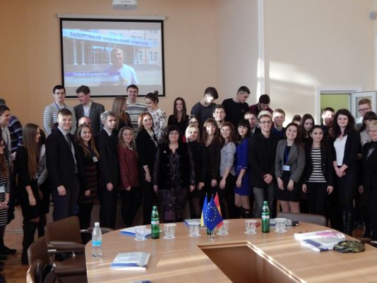 З метою налагодження плідної співпраці між органами студентського самоврядування університетів області та обміном досвіду з жовтня 2015 року започатковано новий формат засідання вищезазначеного консультативно-дорадчого органу – робочі візити до вишів нашого регіону. На черговому засіданні члени ради вирішили відвідати Запорізький національний університет (ЗНУ). Наші студенти, а це: Жмак Ірина – голова студентської ради університету, студентка магістратури факультету Економіки та бізнесу, Гончаров Кирило – 1-ий заступник голови студентської ради університету, студент 3-го курсу Механіко-технологічного факультету, Бєлєва Юлія – заступник голови студентської ради університету з волонтерської діяльності, студентка магістратури факультету Економіки та бізнесу, як завжди, конструктивно прийняли участь у даному заході.