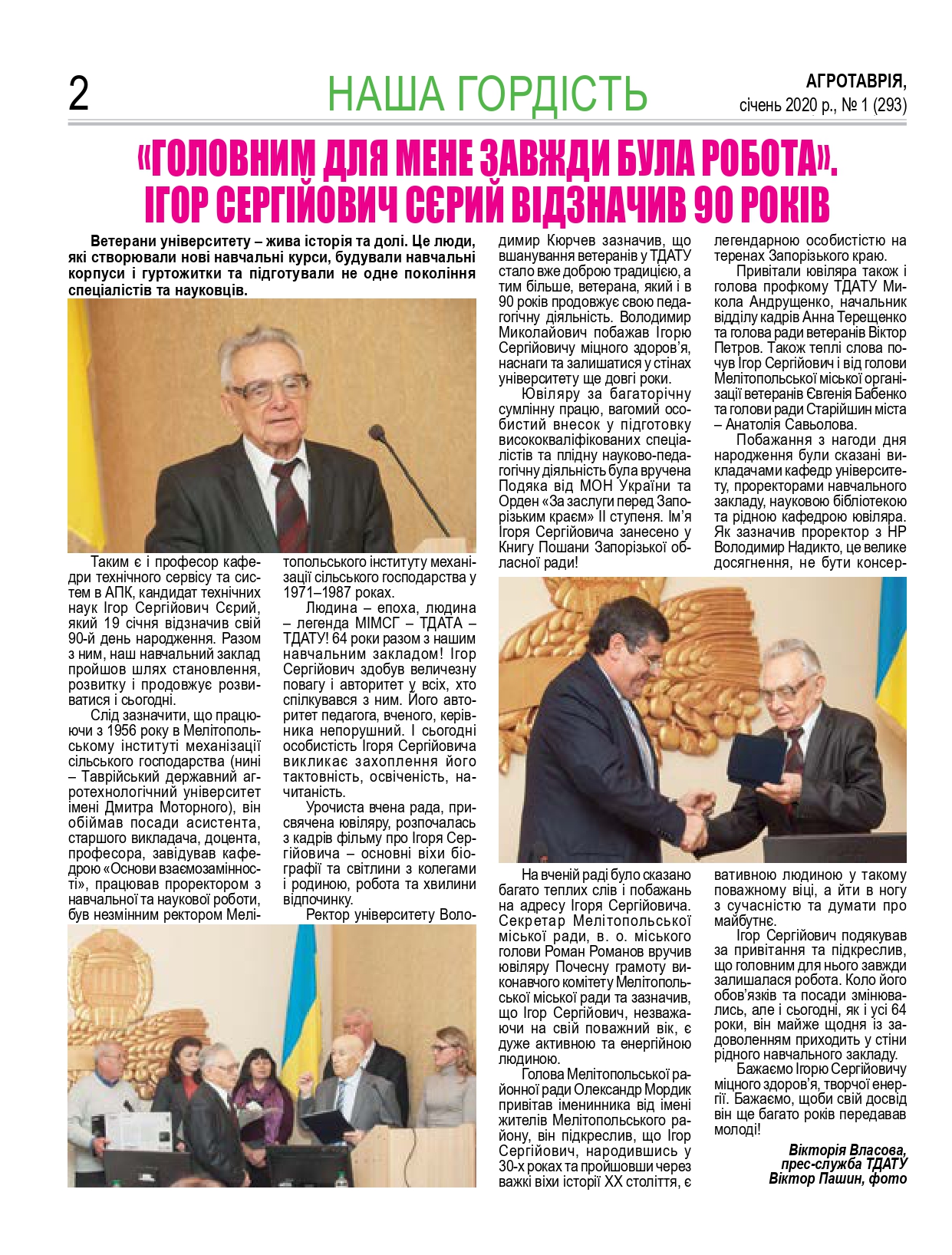 Анонс номеру університетської газети «Агро Таврія» за січень 2020 року