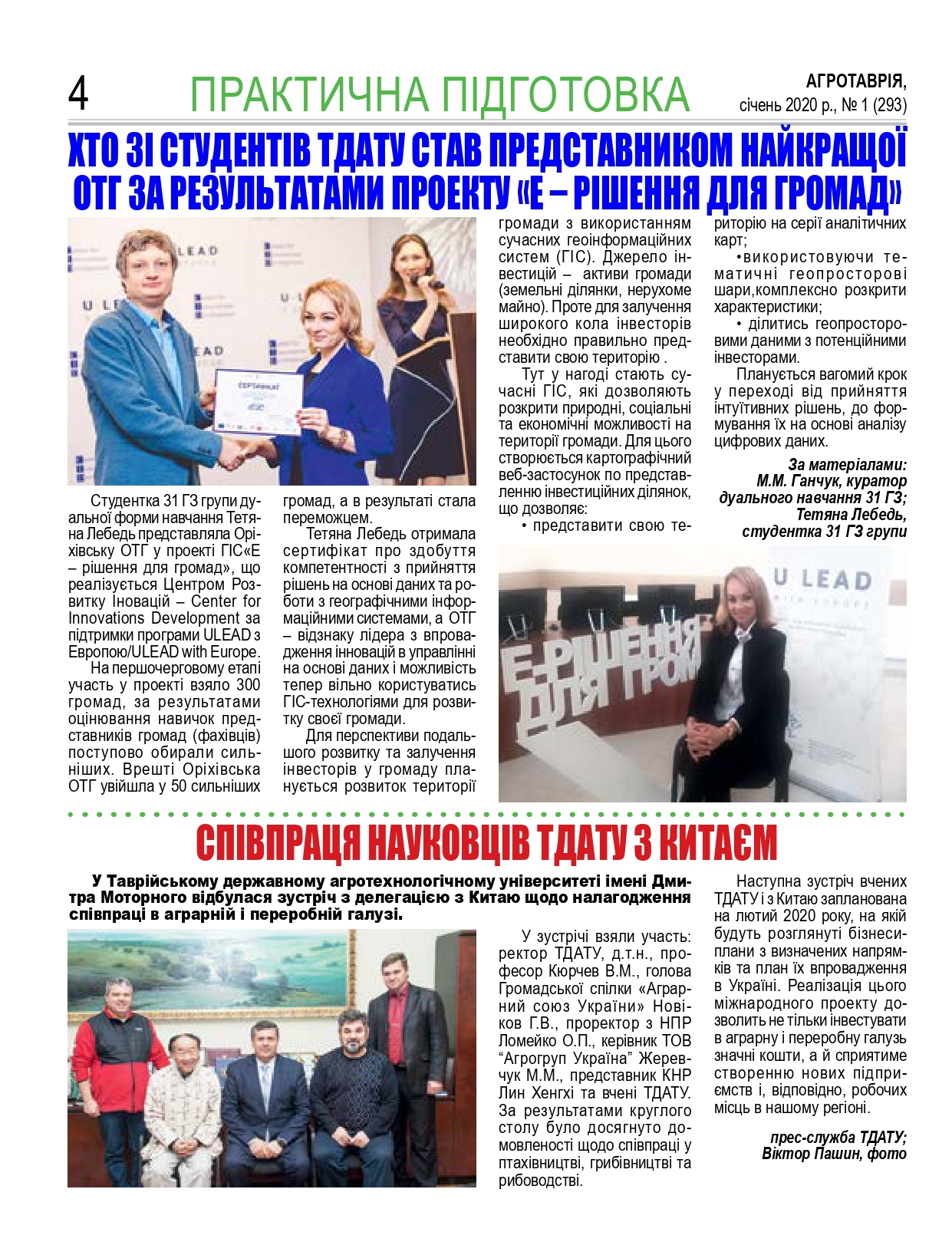 Анонс номеру університетської газети «Агро Таврія» за січень 2020 року