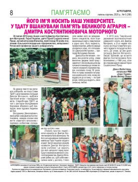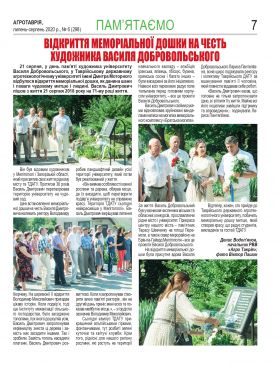 А також, читайте у номері, як студенти ТДАТУ присягу на вірність України складали, про результати молодих науковців після збирання урожаю, про відкриття меморіальної дошки на честь художника Василя Добровольського та вшанування пам’яті Великого аграрія Дмитра Моторного.