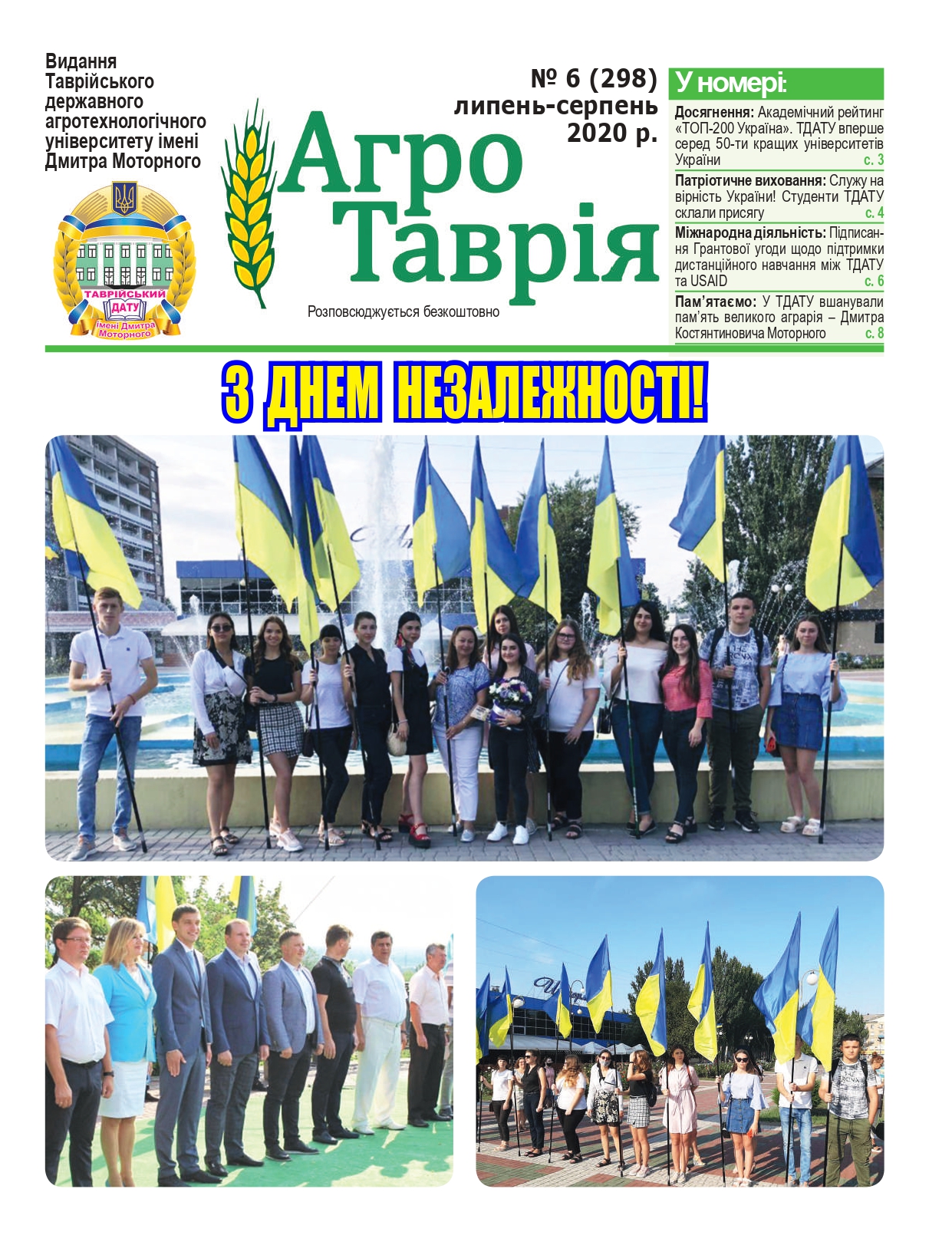 Редакційно-видавничий відділ підготував черговий, 298-й, номер університетської газети «Агро Таврія». На шпальтах видання висвітлені важливі та цікаві події з життя університету. Не дивлячись на карантин, літо у житті ТДАТУ видалося насиченим на цікаві події.