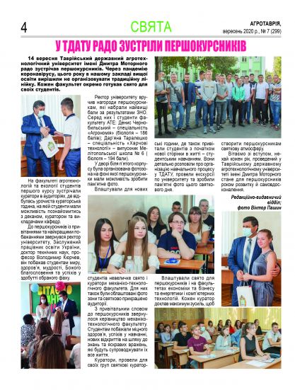 А також, читайте у номері, Мелітопольська черешня стала брендом, у двох навчальних корпусах нашого університету встановили новий сканер термометрії, як у ТДАТУ першокурсників зустріли та яким має бути дрес-код.