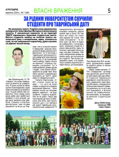 Редакційно-видавничий відділ підготував черговий, 299-й, номер університетської газети «Агро Таврія». На шпальтах видання висвітлені важливі та цікаві події з життя університету, що відбувалися у вересні.