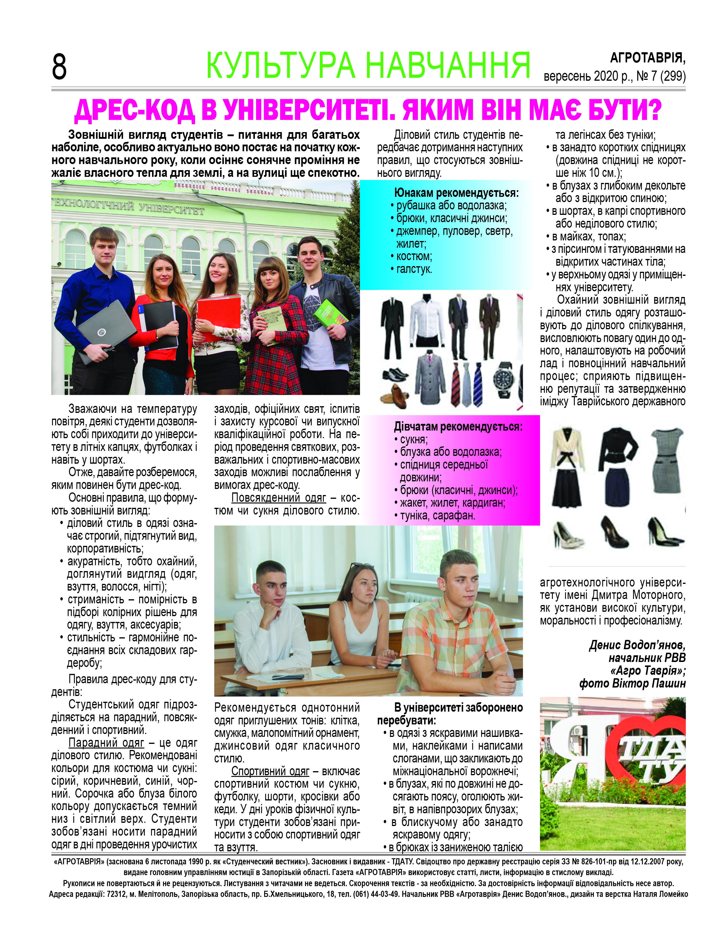 Анонс університетської газети «Агро Таврія» за вересень 2020 року