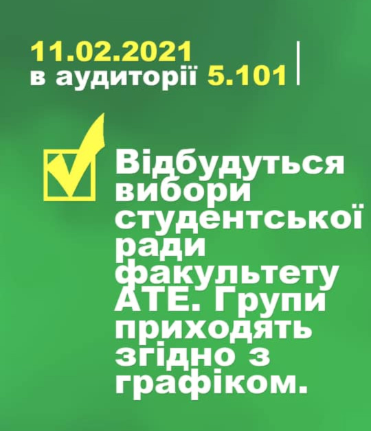УВАГА! ВИБОРИ СТУДЕНТСЬКОЇ РАДИ ФАКУЛЬТЕТУ АТЕ