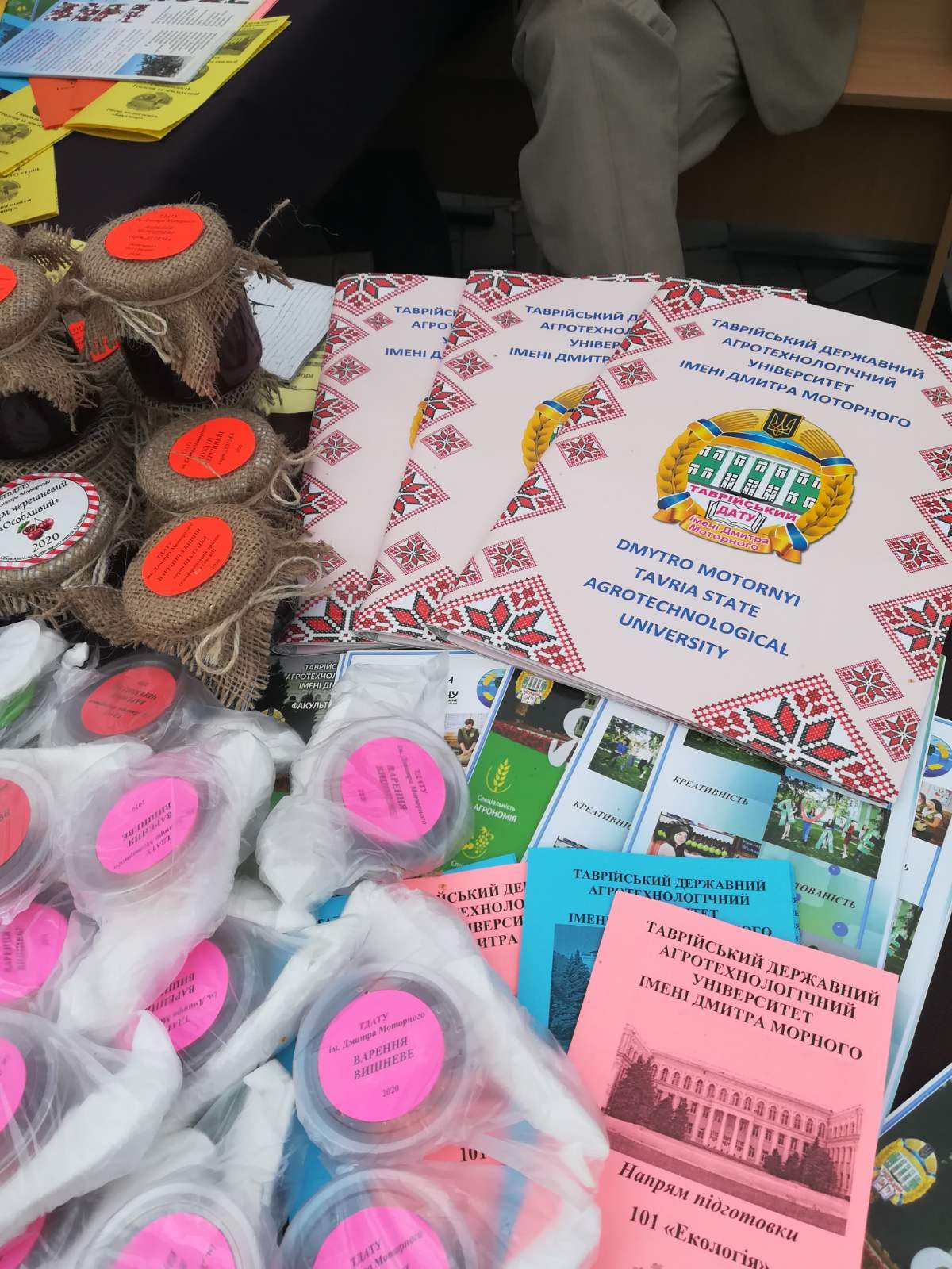 гриби гливи з лабораторії грибівництва, яблука наступних сортів: «Голден Делішес», «Семиренко», «Пінова», «Моді». Смачною фішкою локації стали мед з власної пасіки ТДАТУ ім.. Дмитра Моторного. Також громадяни мали змогу продегустувати джем, варення і цукати з вишень та черешень різних сортів виготовлених за інноваційною рецептурою та технологією.