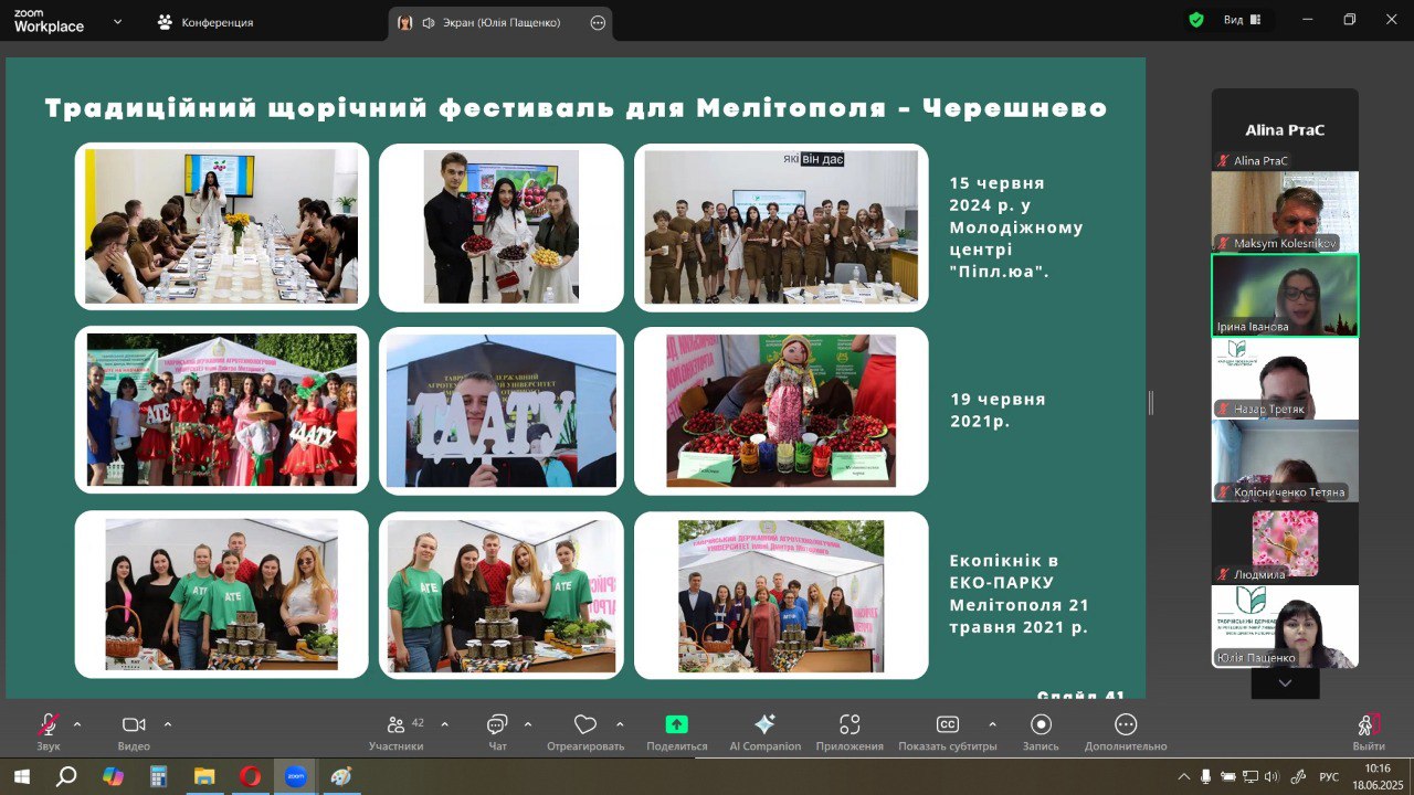 18 червня 2025 року відбулися збори трудового колективу та студентів факультету агротехнологій та екології Таврійського державного агротехнологічного університету імені Дмитра Моторного. Вони проходили в онлайн форматі з допомогою платформи Zoom. Для участі у роботі конференції зареєструвалися 36 делегатів.
