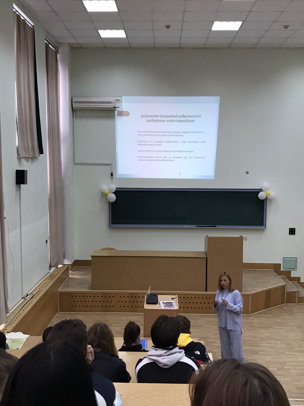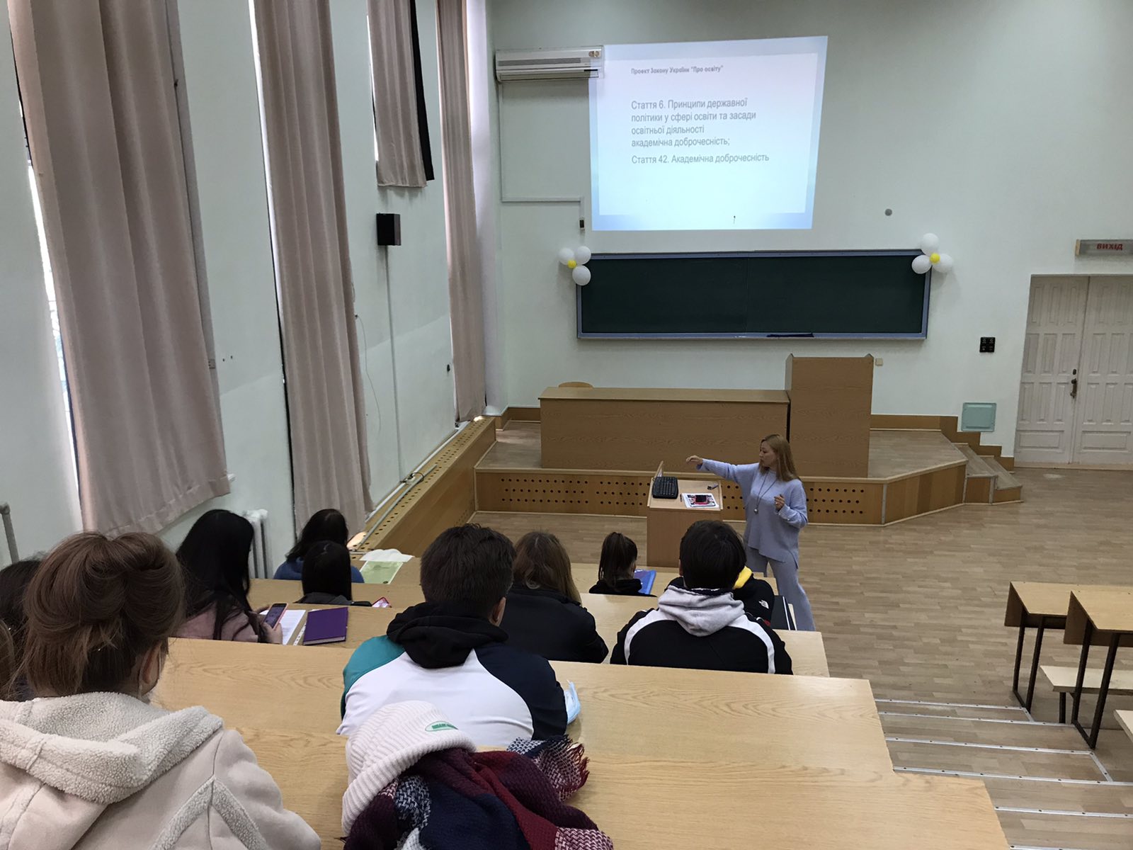 Також студенти були ознайомлені зі змістом документів, які містять політику і стандарти дотримання академічної доброчесності в межах структурного підрозділу, а також ознайомла з документом, що визначає політику та стандарт дотримання академічної доброчесності у ЗВО – Кодексом честі ТДАТУ.