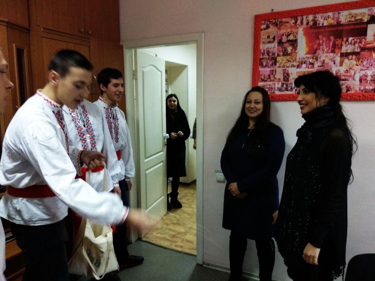 Тож, і хлопці з нашого факультету одягли українські сорочки та, взявши з собою святкову атрибутику, привітали усіх зі старим Новим роком. Вони завітали до співробітників ЦКіД, привітали ректора і проректорів, кафедри факультету АТЕ, а також усі факультети університету та побажали міцного здоров’я, благополуччя, удачі і врожайності на весь рік.