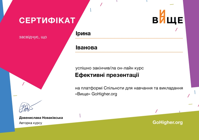 Цей онлайн курс розроблений для удосконалення шляху до вироблення нової системи створення презентацій. ППриродні моделі комунікації з людьми, які допоможуть утримувати їх увагу, будувати довіру і формувати партнерство.