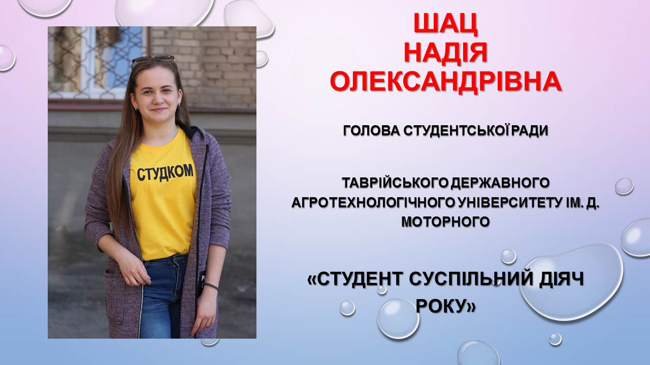 ШАЦ НАДІЯ студентка 31 ЦБ групи факультету АТЕ